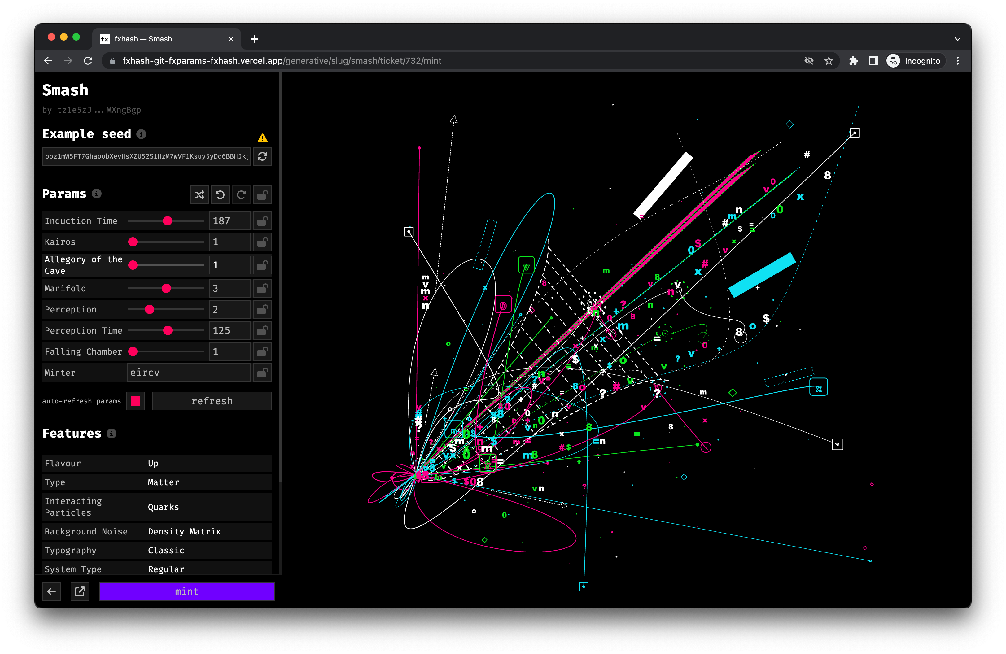 However, fxhash also allows artists to create their own custom minting interfaces with code driven parameters, which greatly extends the possibilities of fx(params). Overall, fx(params) is intended to amplify artistic powers of expression and enables collectors to become co-creators of the art.